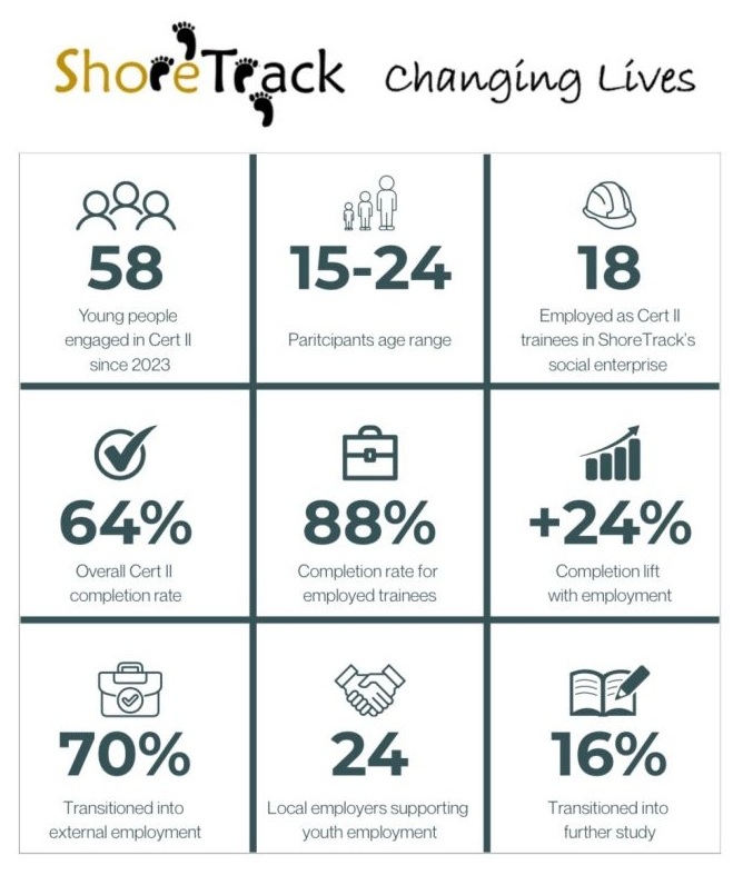 Here is a snapshot of every young person who has participated in ShoreTrack’s Cert II pathway since 2023.